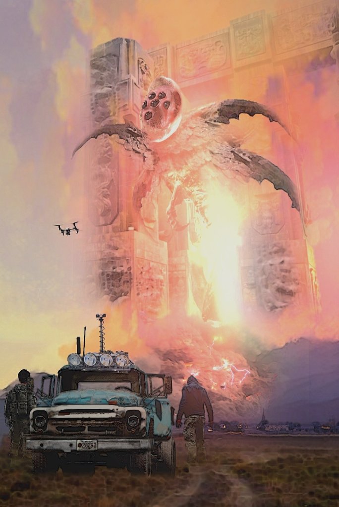 Brume rose, éclairs à la verticale d’une porte dimensionnelle, ciel chargé, créature gigantesque en instance de passage : cérémonie en cours, quelques minutes, pas plus. Cesser rituel, dernière chance.