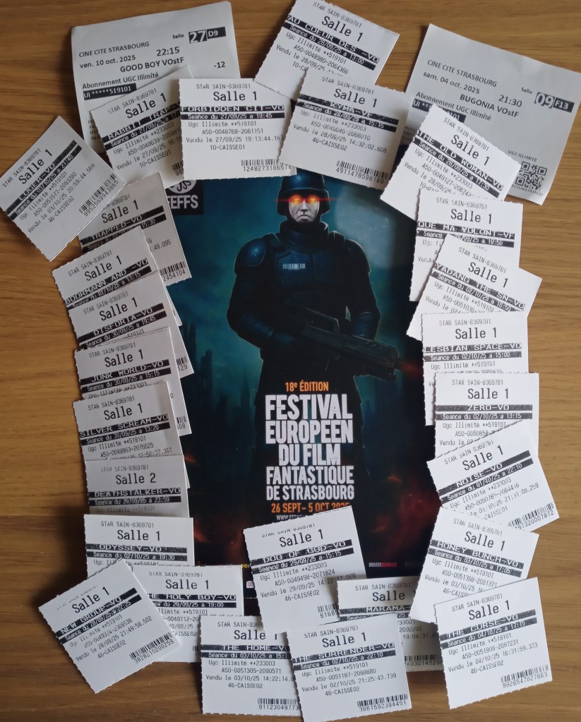 Merci aux équipes, aux bénévoles, pas merci à Ancel pour le sponsor à coup de paquets de bretzel offerts avant les séances, mais merci quand même pour l’argent qui permet à ce festival de vivre, ma misophonie est un maigre sacrifice face aux rares richesses cinématographiques qui me sont offertes, et merci à l’immense majorité du public qui sait se tenir dans la salle ou dans les files d’attente. On se concentre sur le positif, même si ça me condamne à un peu de passif-agressif.